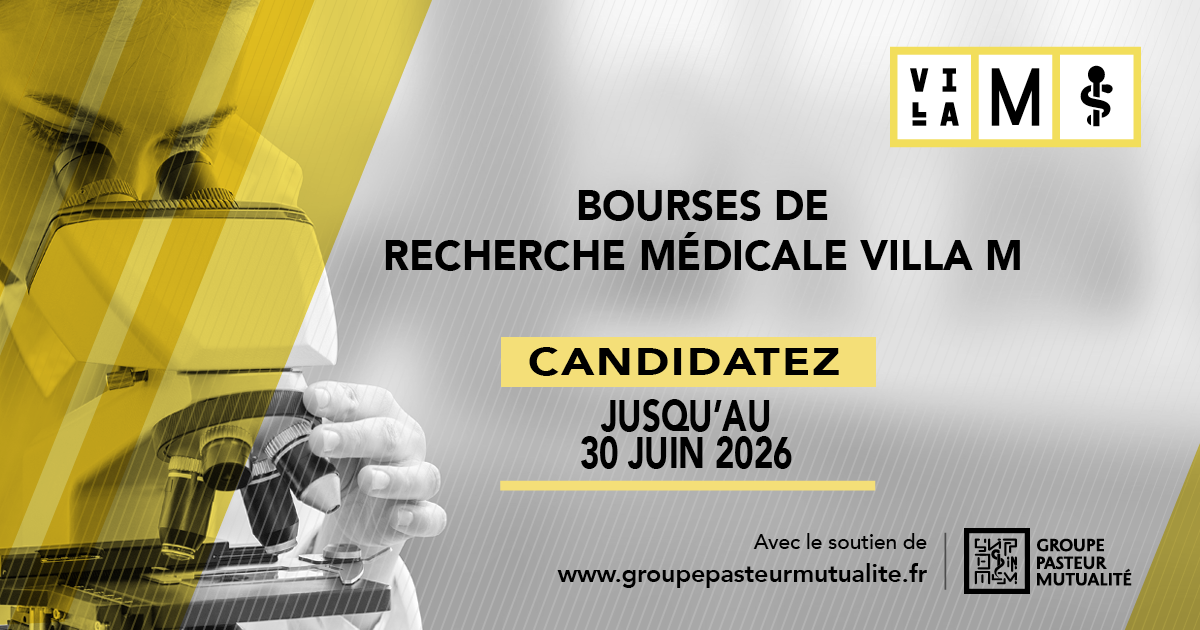 Les Bourses de recherche Villa M sont soutenues par Groupe Pasteur Mutualité et ses mutuelles adhérentes, qui s’engagent aux côtés de Villa M pour accompagner la nouvelle génération de chercheurs et favoriser les avancées scientifiques qui feront la médecine de demain.